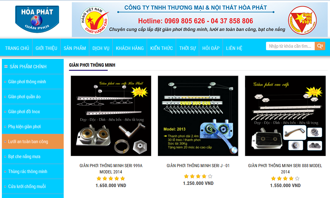 Hòa Phát tự hào liên tục là Top đơn vị dẫn đầu thị trường lắp đặt giàn phơi thông minh, lưới an toàn ban công và bạt che nắng mưa. Khách hàng dễ dàng thao tác chọn bộ giàn phơi thông minh mà gia đình ưng ý